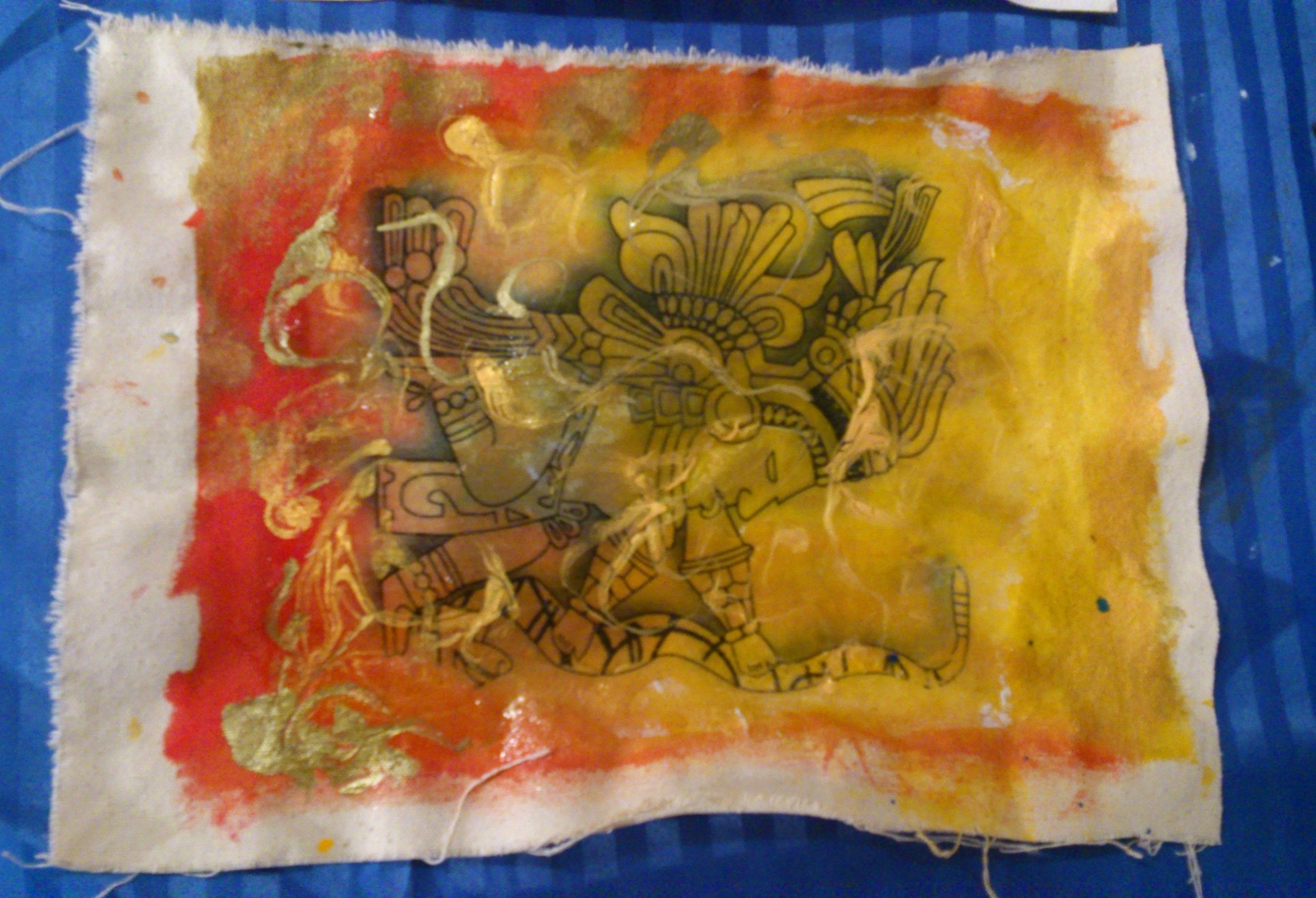 Nous avons fait un transfert d’image, des applications de différentes pâtes et gels, application de peinture, utilisation de pochoir pour la création de différents travaux. La fabrication de différentes peaux a été un peu plus laborieuse…