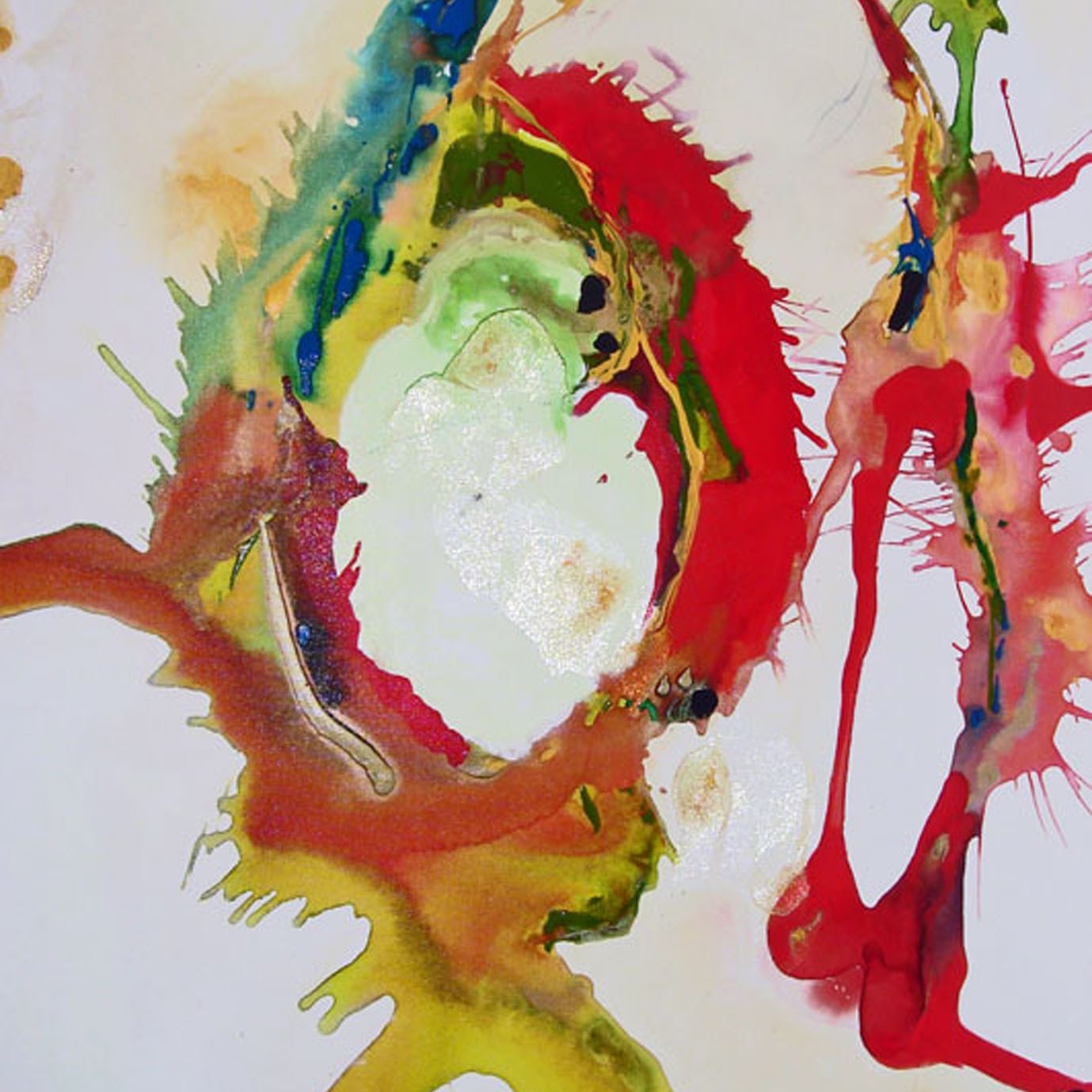 Paysage abstrait, Blanc festif 10x10po. techniques mixtes
